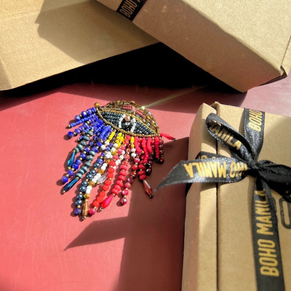 Taghoy brooch is the nation’s cry made visible…. an unblinking eye, shedding the colors of our flag, refusing to look away.🇵🇭✨